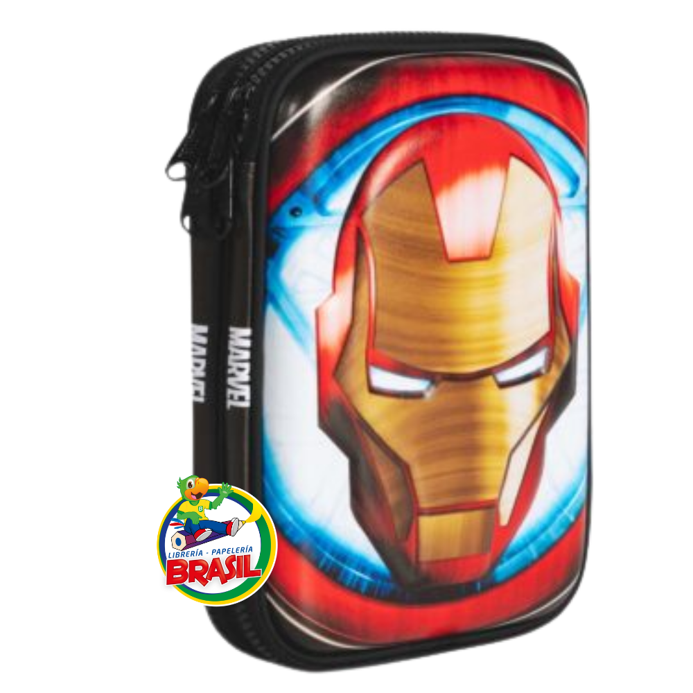Cartuchera o Estuchera Doble Eva con 2 Cierre, Compartimientos y ligas, Iron Man Negro Marca Mooving