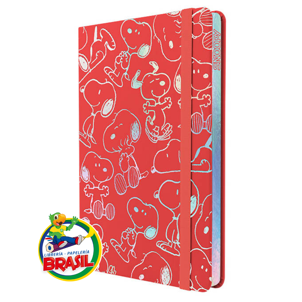 Cuaderno, Libreta, Notas tapa dura A5 hojas rayado Snoopy Modelo 1 con elástico Color Rojo Notes Mooving
